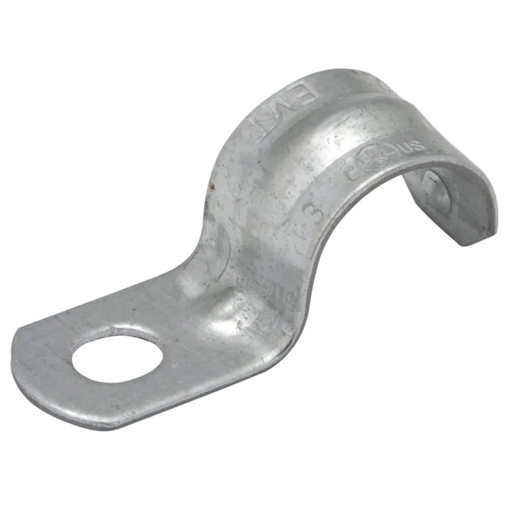 One-hole strap is used to mount EMT conduit. The one-hole push-on strap will snap onto EMT conduit. Oversized bolt holes makes alignments of the fastener quick and easy.