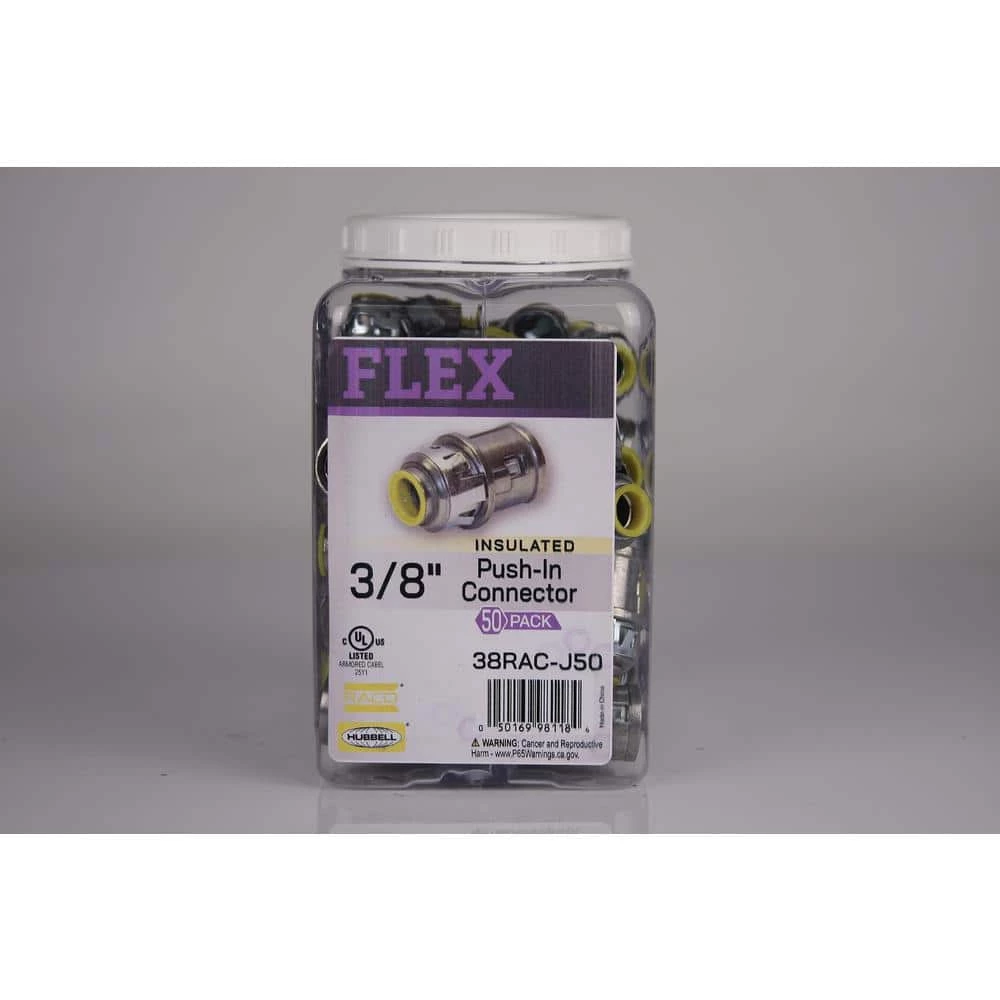 RACO’s Push-in cable connectors make it easy to secure metal-clad cable into boxes or enclosures. Simply insert a cable into the cable opening, then snap the box end of the connector into a box knockout, done. No tools needed for a secure assembly. Push-in connectors are perfect for new or old work and can be removed and reused.