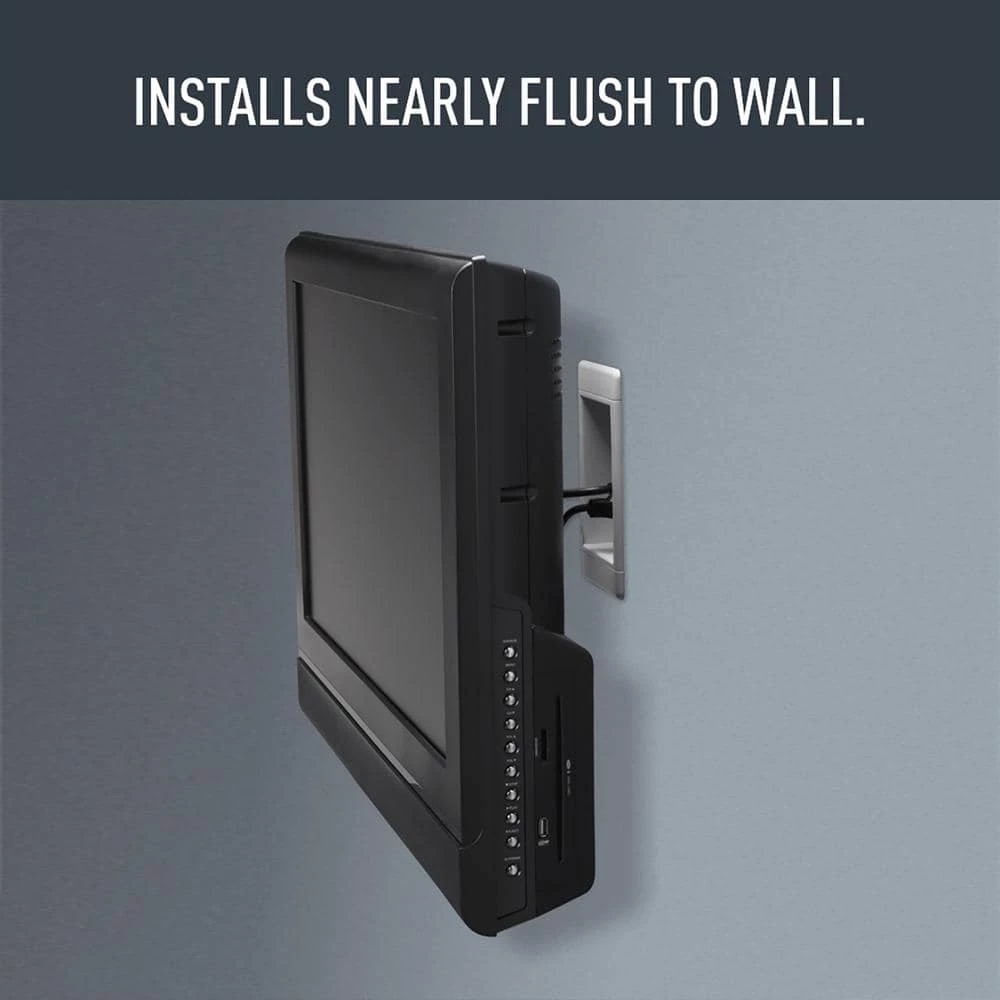 - Plugs and multimedia connections stay recessed behind the wall surface