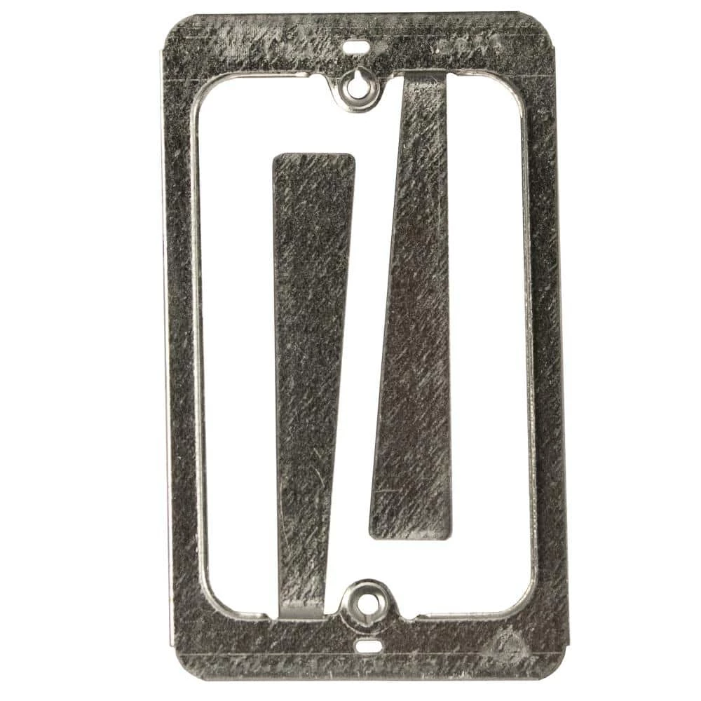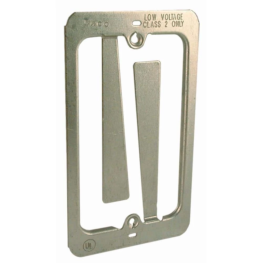 Mounts standard low voltage wall plates, in existing walls. Bracket is made from zinc-precoated steel. Accommodates for either for left or right side stud mount.