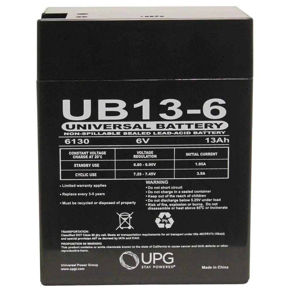 The SLA UB6130 TOY 6-Volt 0.187 in. Terminal Battery has premium quality absorbed glass mat technology (AGM) ideal for ATVs, motorcycles, personal watercraft, and snowmobiles. The Adventure Power AGM Battery was designed for more than performance; it was designed for the enthusiast with more cranking power than our competitors’ same sized battery. Adventure Power batteries are completely spill proof and leak proof. Frequent replacement and high maintenance are over. A one year warranty is also included for your peace of mind. The key to this technology is the porous microfiber separators, which completely absorb and trap electrolyte. Molded top and side connection terminals provide versatility, increased strength and durability. The Adventure Power AGM Battery provides the most power and best value in the industry. Primary Applications: ATV, Emergency Lighting.