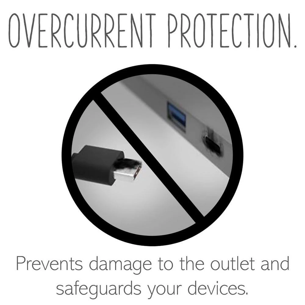 - Includes multiple layers of overcurrent protection, ensuring the outlet and your favorite devices can charge at optimal levels without risk of damage