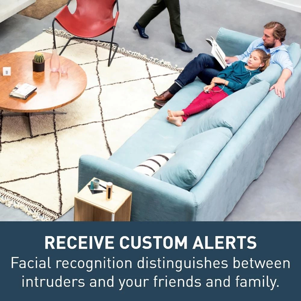 - Custom alerts use facial recognition to distinguish between intruders or your family, friends and pets