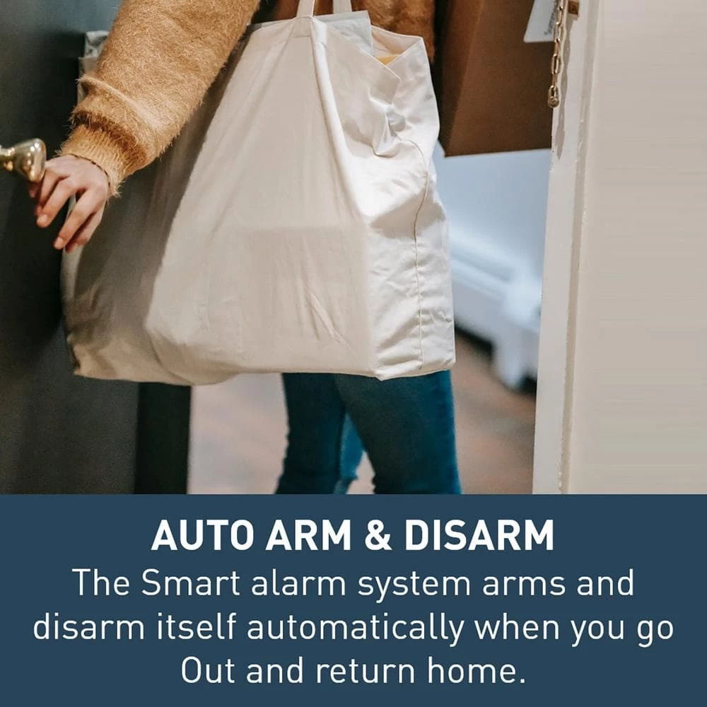 - Smart alarm system arms and disarms automatically when you exit and return home