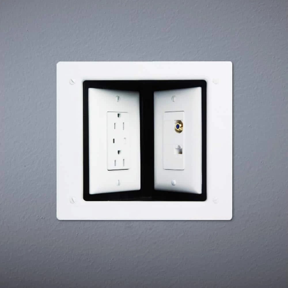 - Plugs and multimedia connections stay recessed behind the wall surface