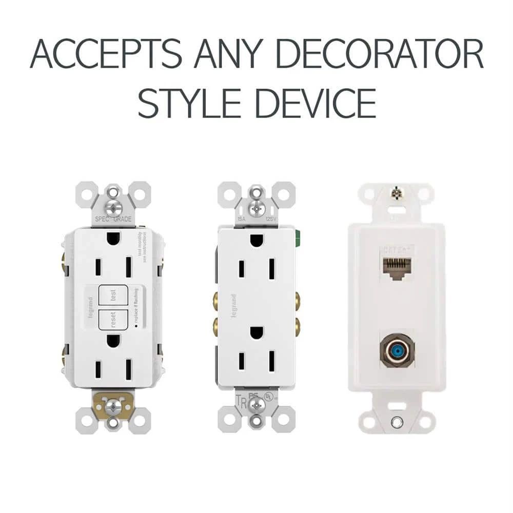 - Standard decorator opening that accepts GFCI, TVSS, or other decorator devices