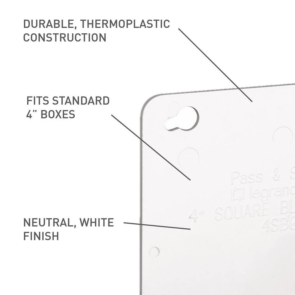 Legrand covers for square junction boxes are made of durable, time-tested materials. They install easily to save you time. The square cover will work with a 4 inch square junction box.