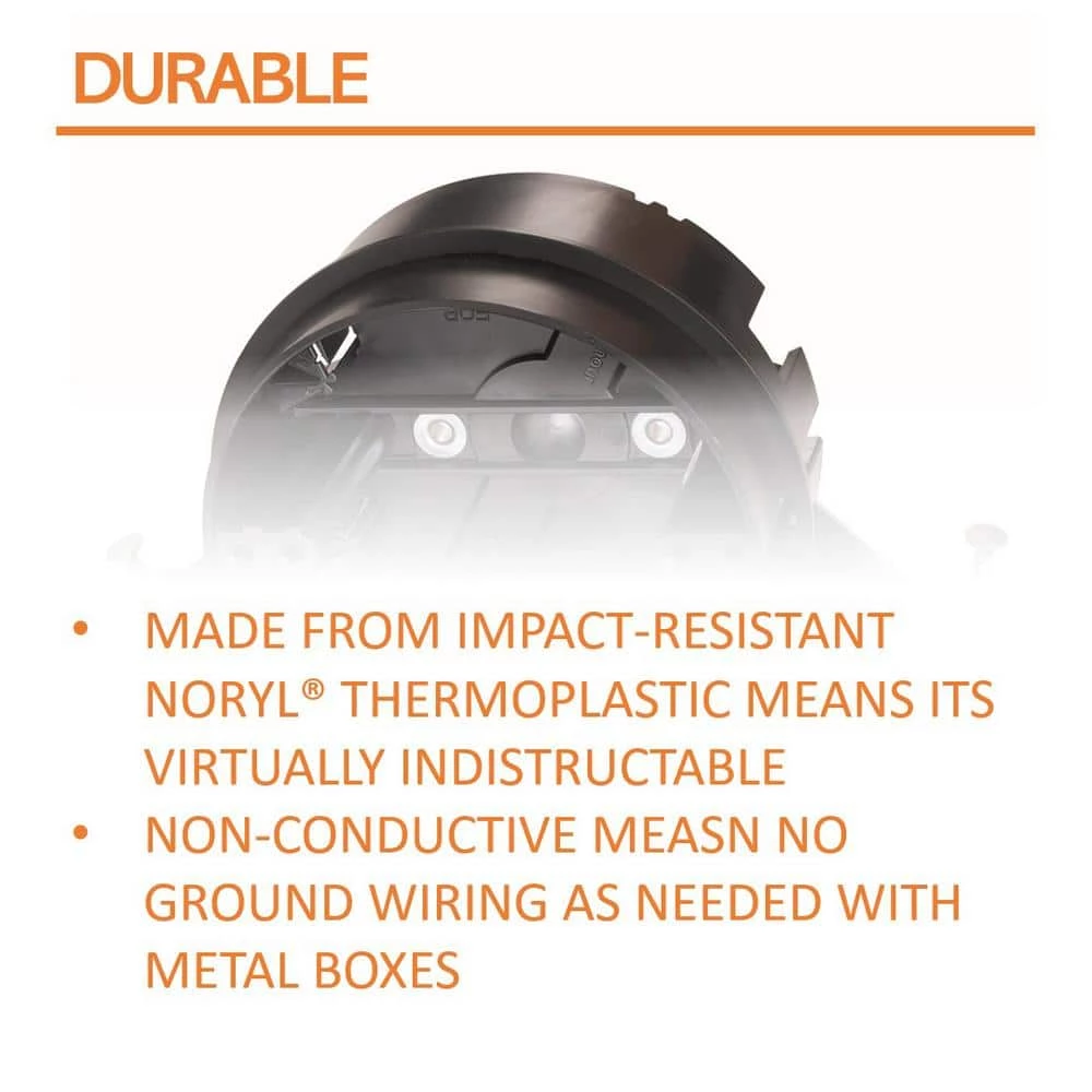 - Depth mounting gauge at bottom of bracket helps you align the box at the proper depth relative to the ceiling