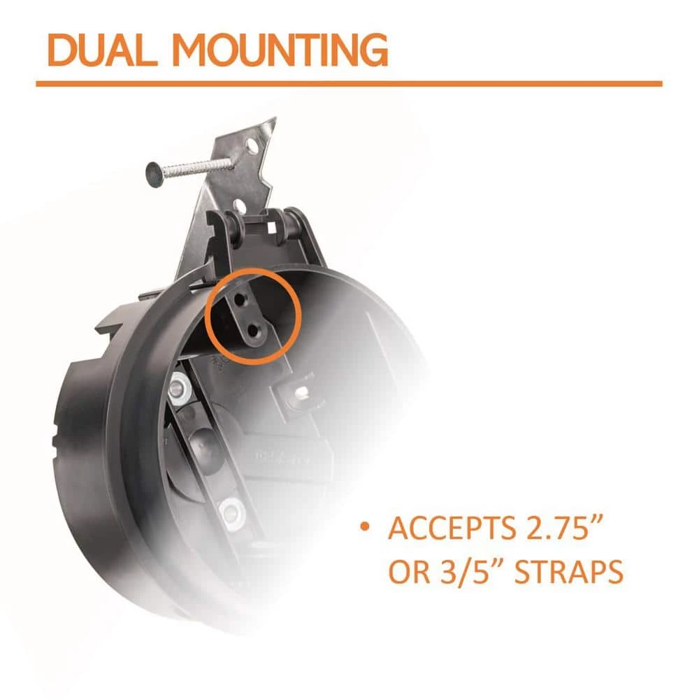 - Dual mounting accepts fans or fixtures with 2.75 in. or 3.5 in. straps