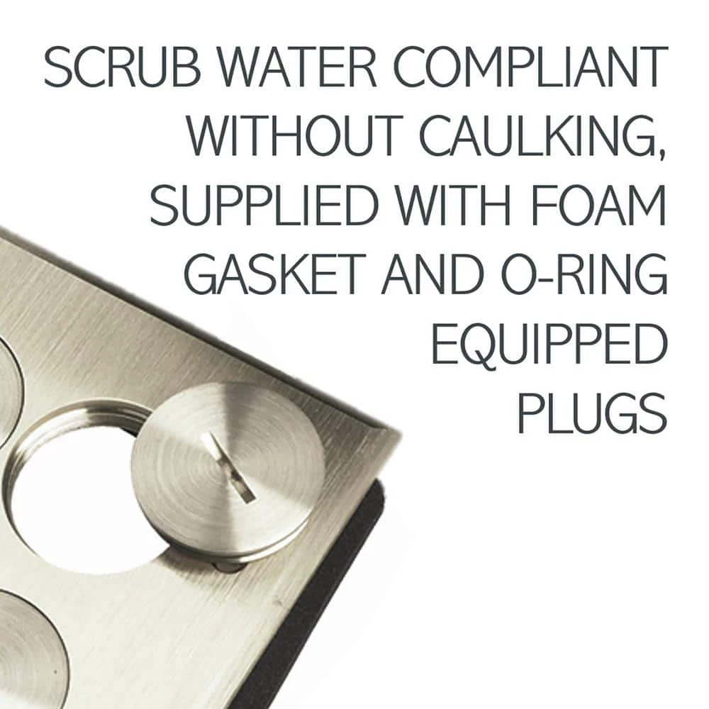 - Scrub water compliant (UL514C and NEC314.27c) without caulking – supplied with foam gasket and O-ring equipped plugs