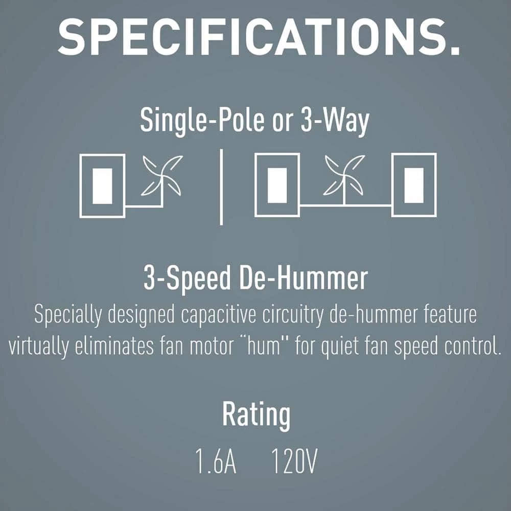 - Specially designed capacitive circuitry de-hummer feature virtually eliminates fan motor hum for quiet fan speed control