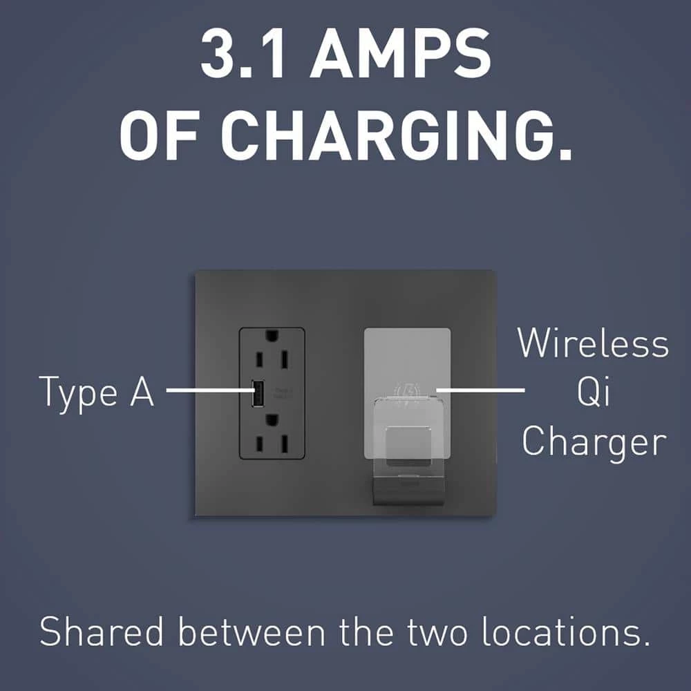 The radiant collection is a step up from the standard with simple, classic options in wiring devices, home automation controls and screwless wall plates that complement today’s homes. The Legrand radiant Wireless Charger with Tamper Resistant Outlet and USB lets you extend you charging capabilities with wireless Qi technology and instantly provides a convenient, clutter-free space to charge your phone. Designed to complement your decor, radiant layers on the style with tasteful finish options to coordinate with any style.