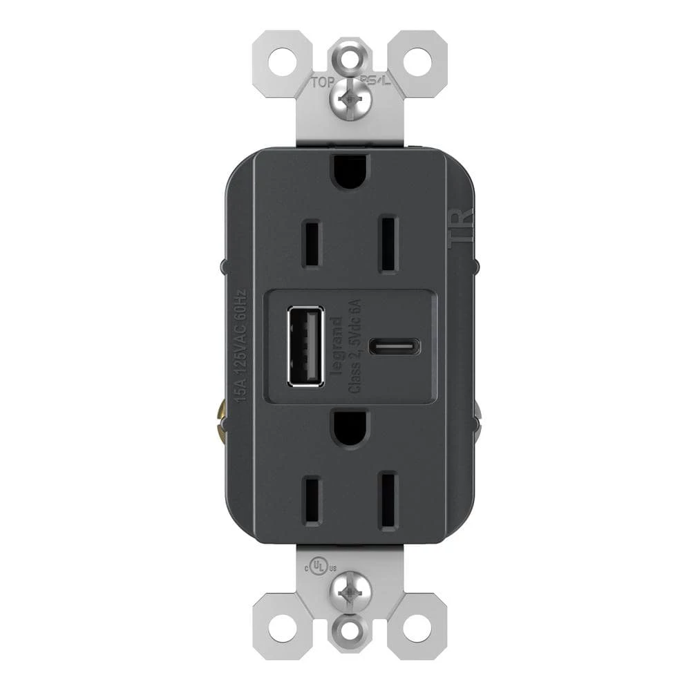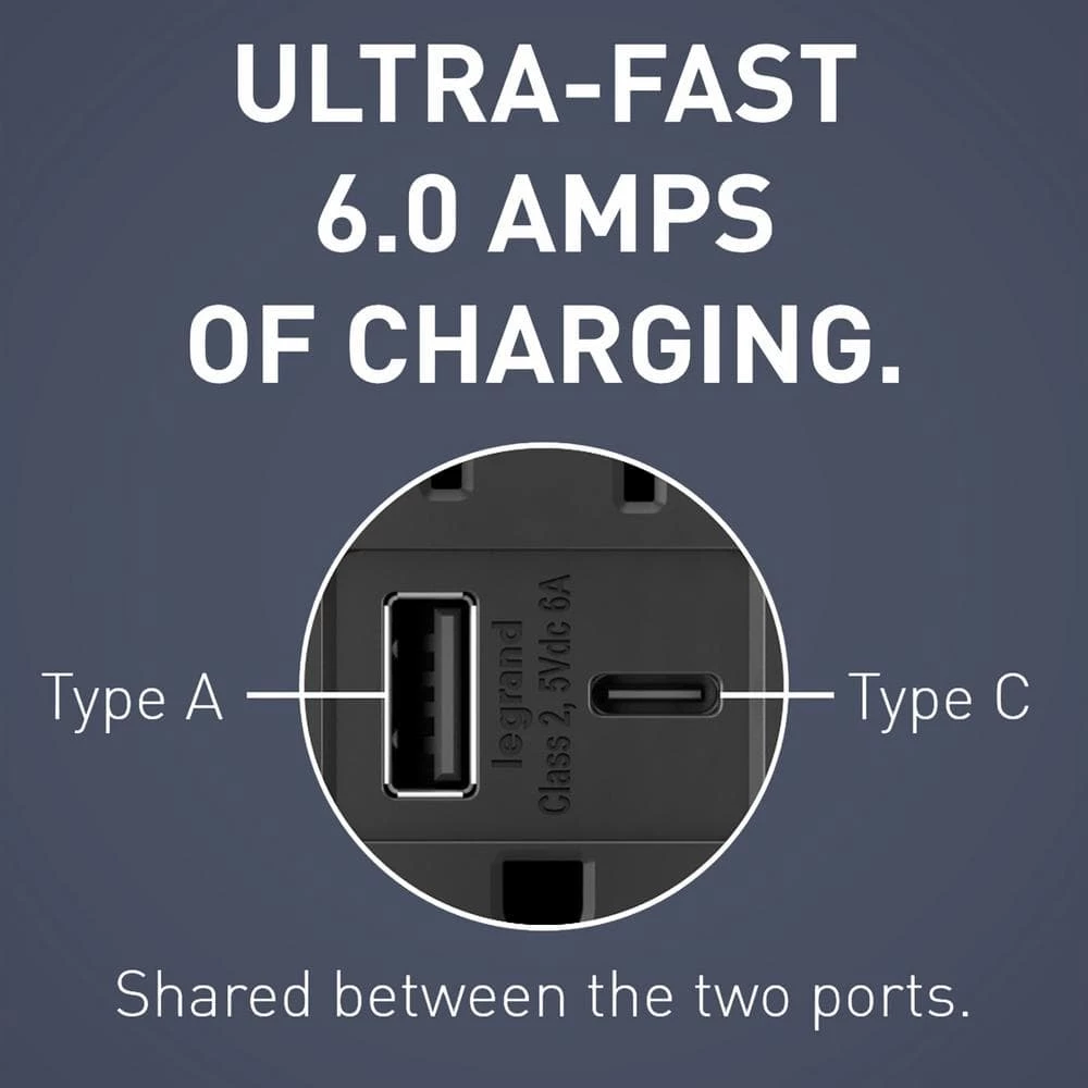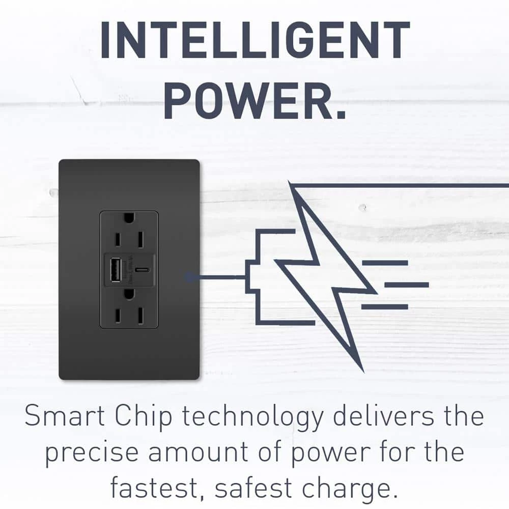 Install the fastest USB charger on the market. Charge your smartphones, tablets, and laptops up to 40% faster than 3 Amp to 5 Amp USB chargers, while enjoying the added power convenience of Tamper-Resistant outlets that meet NEC requirements. Industry-leading charging capacity of 6.0 Amp shared between both ports. Protects children: patented shutter system helps prevent improper insertion of foreign objects – now with black invisi-shutters for an invisible effect. Designed to complement your decor, radiant layers on the style with tasteful finish options to coordinate with any style.