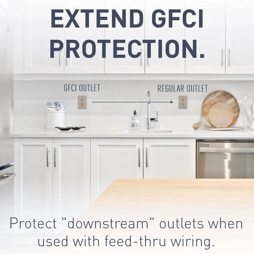 - Feed-thru wiring configuration allows GFCI to protect downstream receptacles