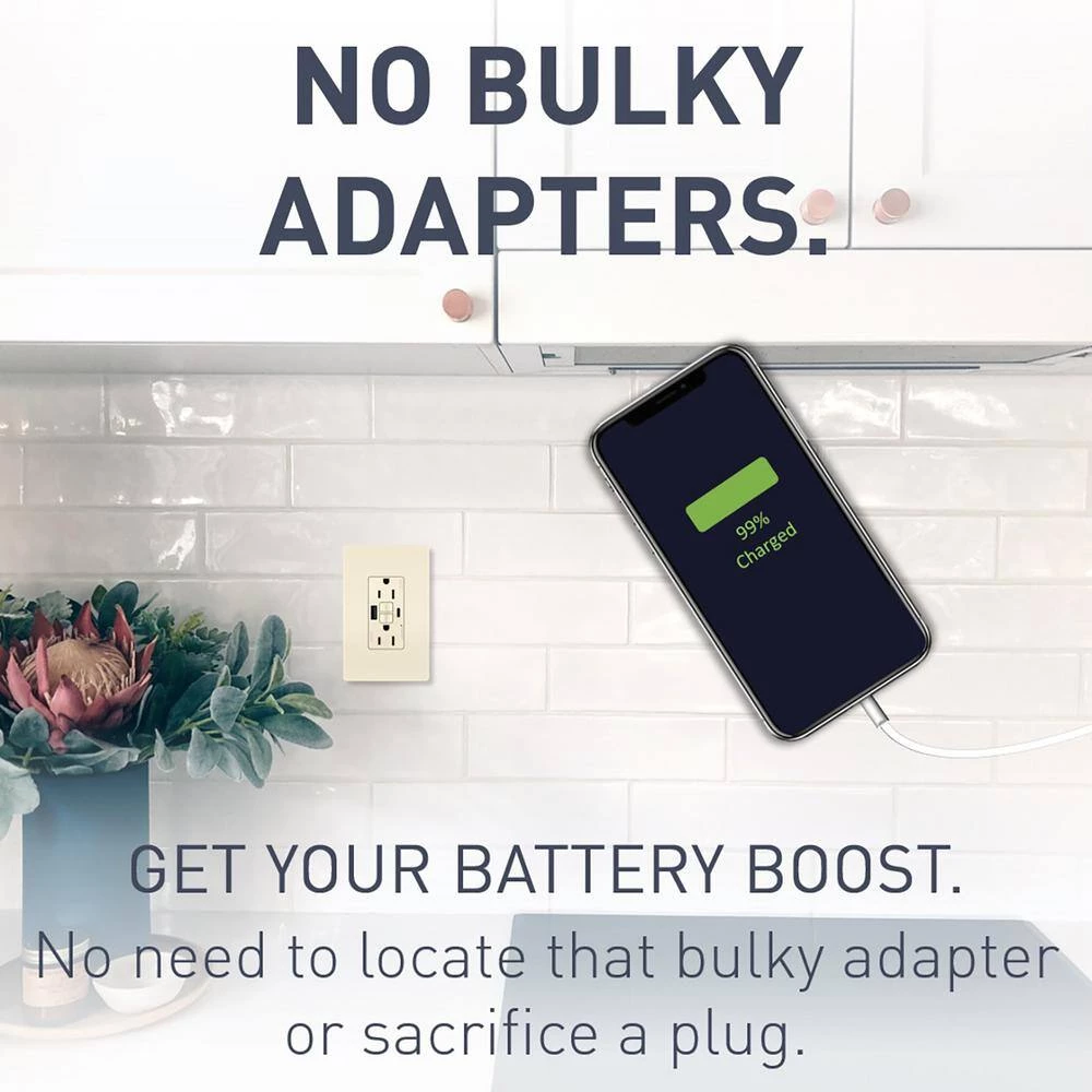 The radiant collection is a step up from the standard with simple, classic options in wiring devices, home automation controls and screwless wall plates that complement today’s homes. GFCI protection meets modern convenience with this clever integration of 2 USB charging outlets, which provide 2.1 Amp of combined charging power right alongside GFCI outlets. The radiant USB charging solutions let you charge more of your devices without the need for bulky AC adapters.