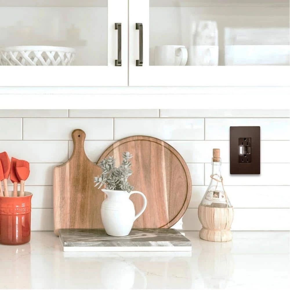 The radiant collection is a step up from the standard with simple, classic options in wiring devices, home automation controls and screwless wall plates that complement today’s homes. The self-test GFCI conducts an automatic test every 3-seconds, ensuring it’s always ready to protect. If the device fails the test, the indicator light flashes to signal that the GFCI should be replaced. It also has our proven SafeLock Protection feature: if critical components are damaged and protection is lost, power to the receptacle is disconnected. The energy efficient LED nightlight has an average life expectancy of 20-years and photocell automatically turns light ON in dark and OFF in. daylight. The metallic dark bronze finish is designed to complement the beauty of dark bronze lighting fixtures, faucets and hardware.