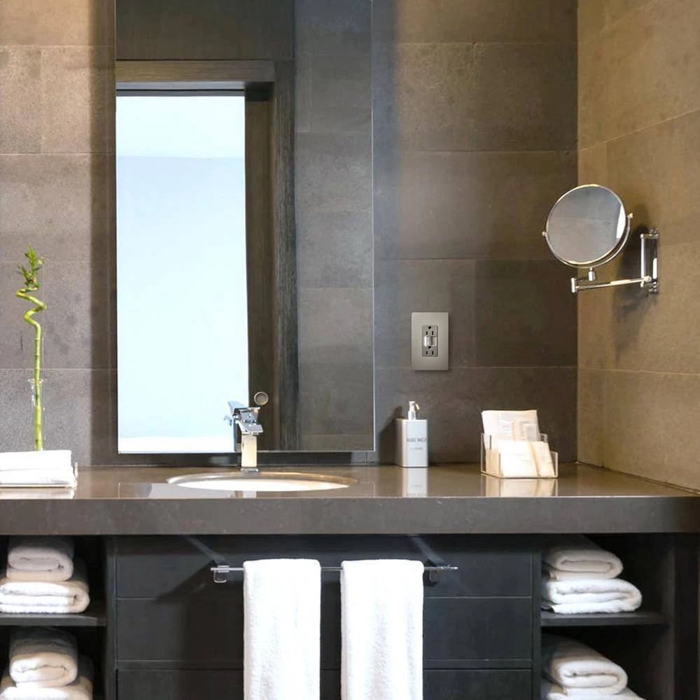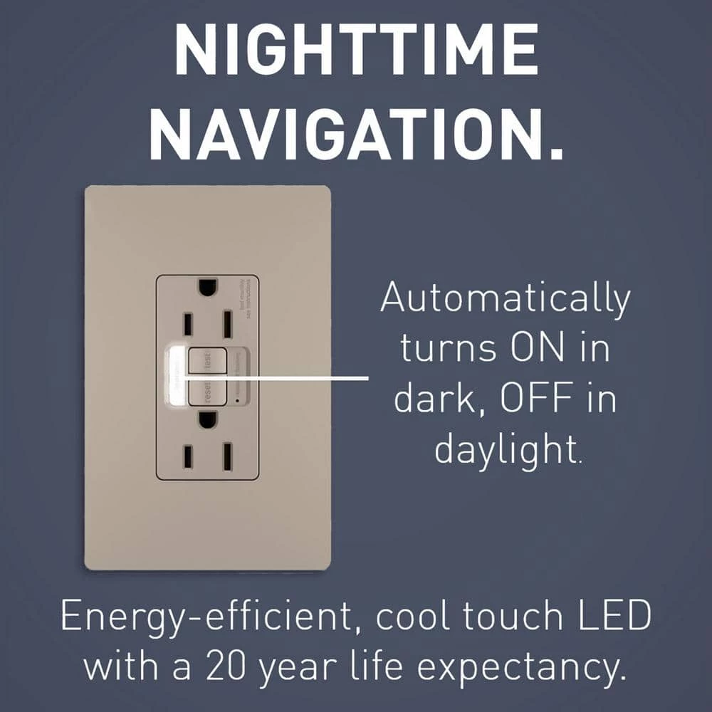 The radiant collection is a step up from the standard with simple, classic options in wiring devices, home automation controls and screwless wall plates that complement today’s homes. The self-test GFCI conducts an automatic test every 3-seconds, ensuring it’s always ready to protect. If the device fails the test, the indicator light flashes to signal that the GFCI should be replaced. It also has our proven SafeLock Protection feature: if critical components are damaged and protection is lost, power to the receptacle is disconnected. The energy efficient LED nightlight has an average life expectancy of 20-years and photocell automatically turns light on in dark and off in daylight. The metallic nickel finish is designed to complement the beauty of stainless-steel appliances, as well as nickel lighting fixtures, faucets and hardware.