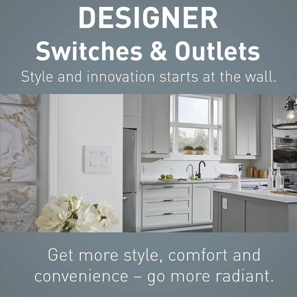- Complete the look and pair with a matching radiant screwless wall plate, sold separately