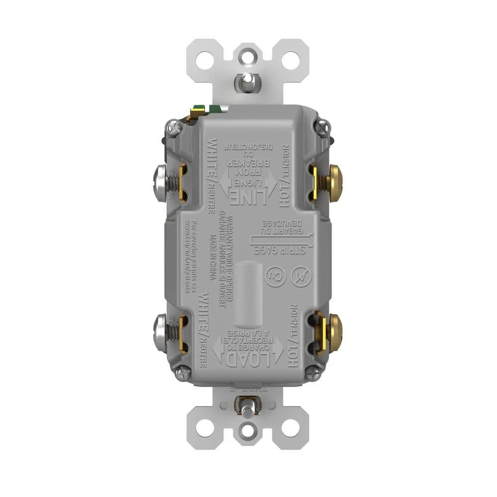 - Prevents line-load reversal miswire: no power to the face or downstream receptacles if wired incorrectly