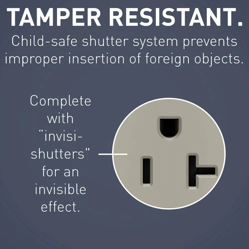 - Patented internal shutter system lets plugs in, but keeps keys and other objects out with automatic shutters that block access