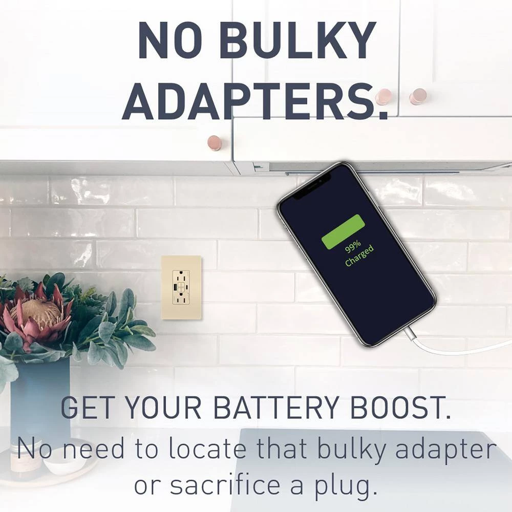 The radiant collection is a step up from the standard with simple, classic options in wiring devices, home automation controls and screwless wall plates that complement today’s homes. GFCI protection meets modern convenience with this clever integration of 2 USB charging outlets, which provide 2.1 2.1 Amp of combined charging power right alongside GFCI outlets. The radiant USB charging solutions let you charge more of your devices without the need for bulky AC adapters.