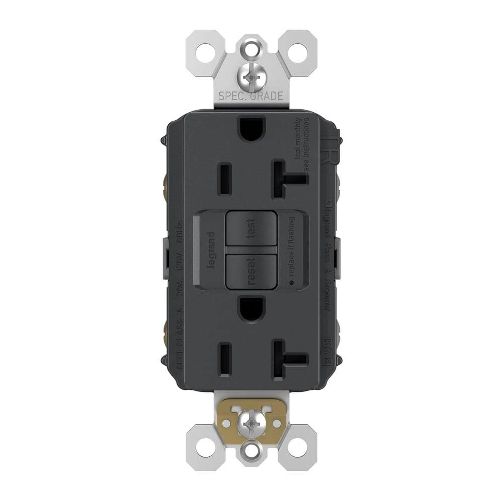 The radiant collection is a step up from the standard with simple, classic options in wiring devices, home automation controls and screwless wall plates that complement today’s homes. The self-test GFCI conducts an automatic test every 3 seconds, ensuring it’s always ready to protect. If the device fails the test, the indicator light flashes to signal that the GFCI should be replaced. It also has our proven SafeLock Protection feature: if critical components are damaged and protection is lost, power to the receptacle is disconnected. The metallic graphite finish is designed to complement the beauty of black stainless-steel appliances and satin or matte black lighting fixtures, faucets, and hardware.