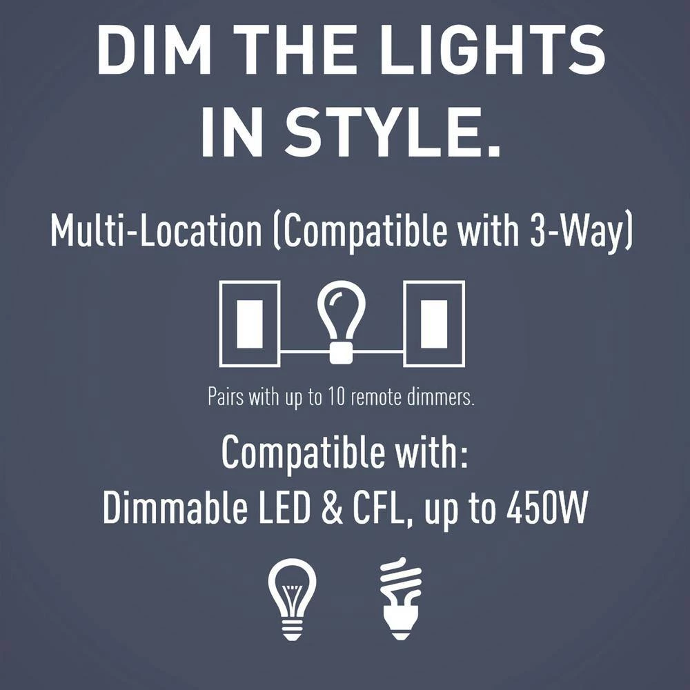 - Works with dimmable CFL and LED (up to 450-Watt), and all halogen and incandescent (up to 700-Watt) bulbs