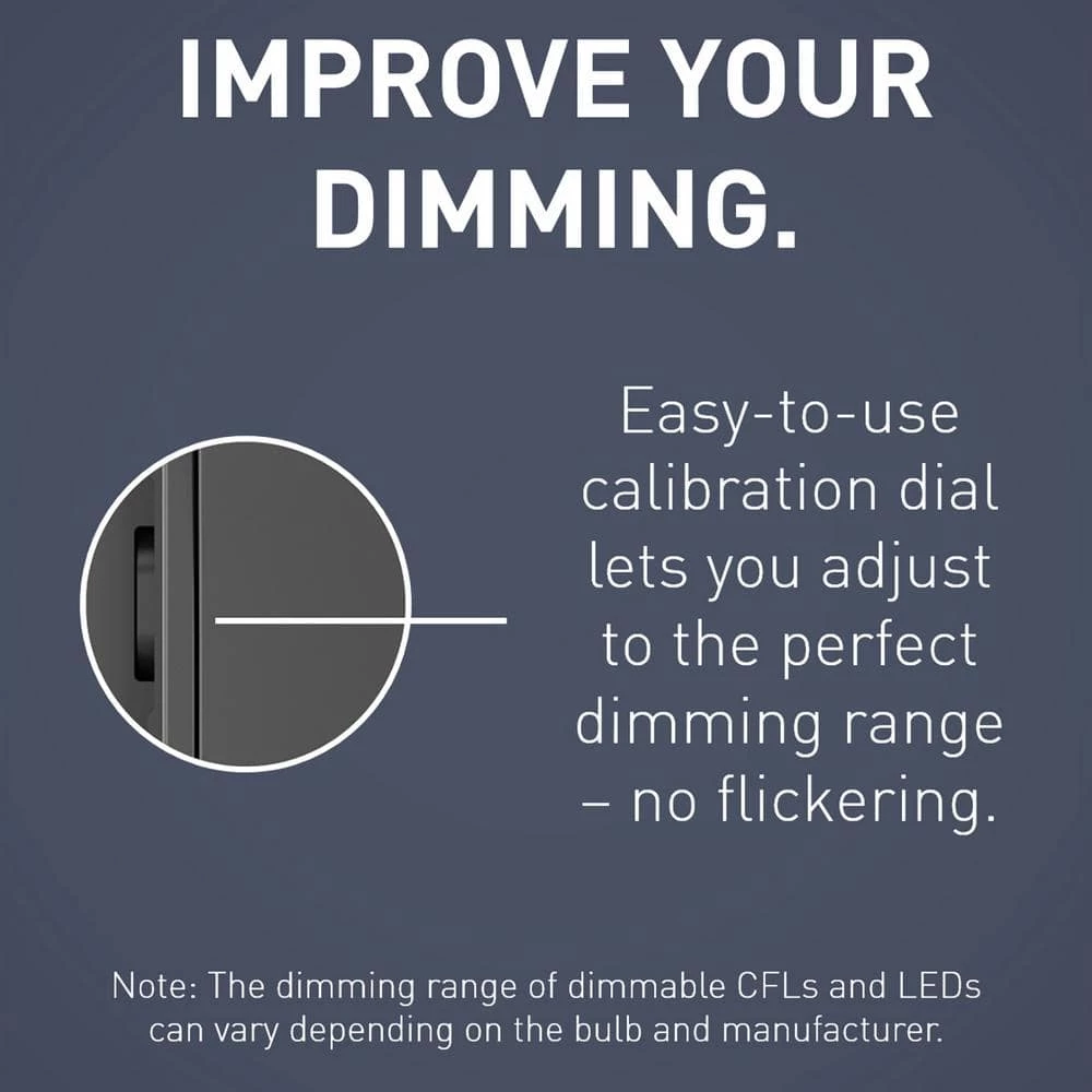 - Adjustment dial allows users to adjust the bottom of the dimming range for a wide range of CFL and LED bulbs
