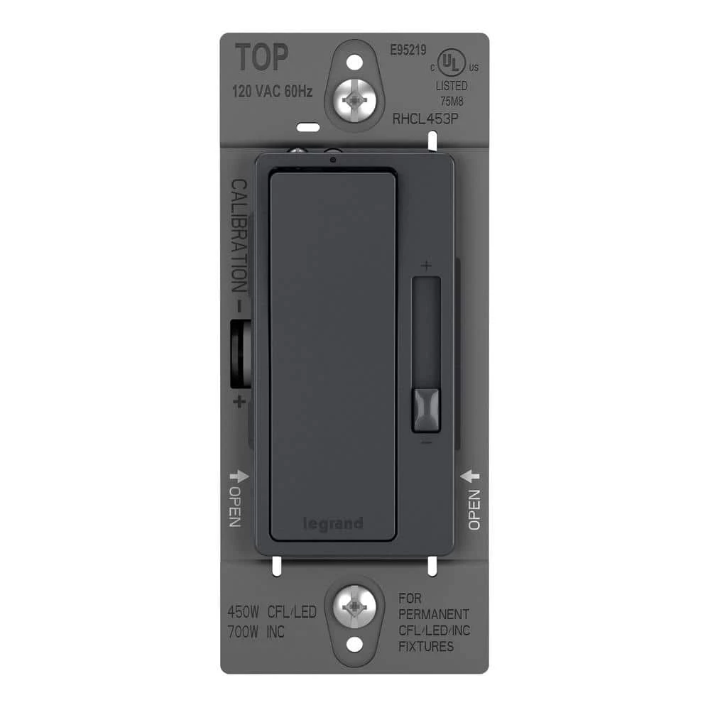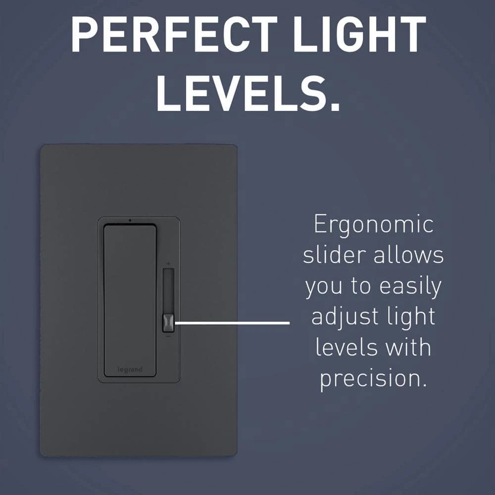The radiant collection is a step up from the standard with simple, classic options in wiring devices, home automation controls and screwless wall plates that complement today’s homes. Upgrading your standard switch to this dimmer will save energy and extend bulb life by reducing the amount of electricity required to power the lights. Backed by a lifetime warranty, this dimmer is compatible with CFL/LED dimmable bulbs (except 0-Volt to 10-Volt LED drivers). The metallic graphite finish is designed to complement the beauty of black stainless-steel appliances and satin or matte black lighting fixtures, faucets, and hardware.