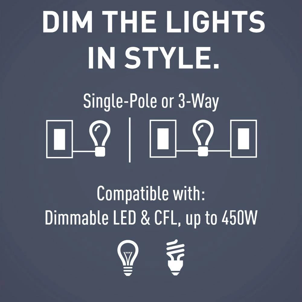 - Convenient operation combines on/off paddle switch with separate slider for dimming control