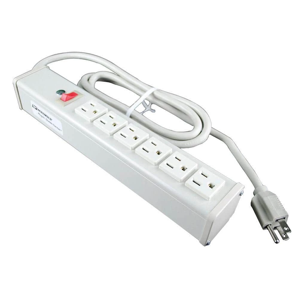 - Power strip features six 15A receptacles spaced 1-1/4 in. on center