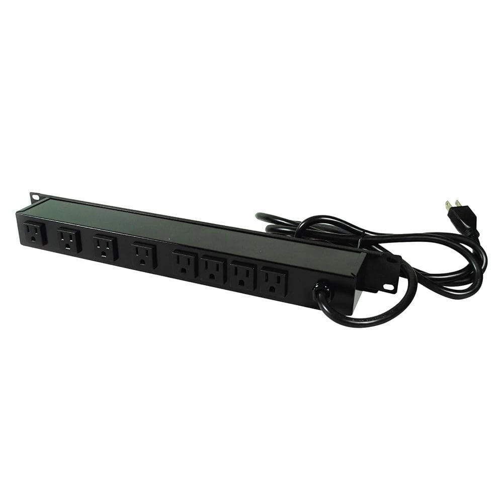 - Power strip features eight 15A receptacles located in the rear with four receptacles spaced 1-1/2 in. on center and four receptacles spaced 2 in. on center