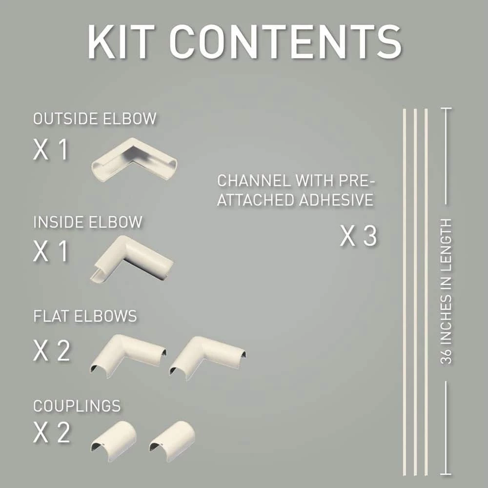 - Kit comes with three sections of 3 ft. pieces of channel with pre-attached adhesive backing for quick, peel and press installation