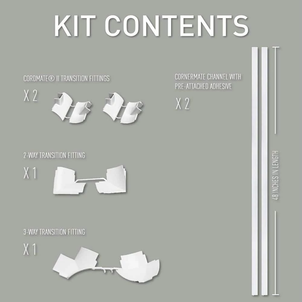 - Includes transition fittings to connect to Cordmate II channel (sold separately)