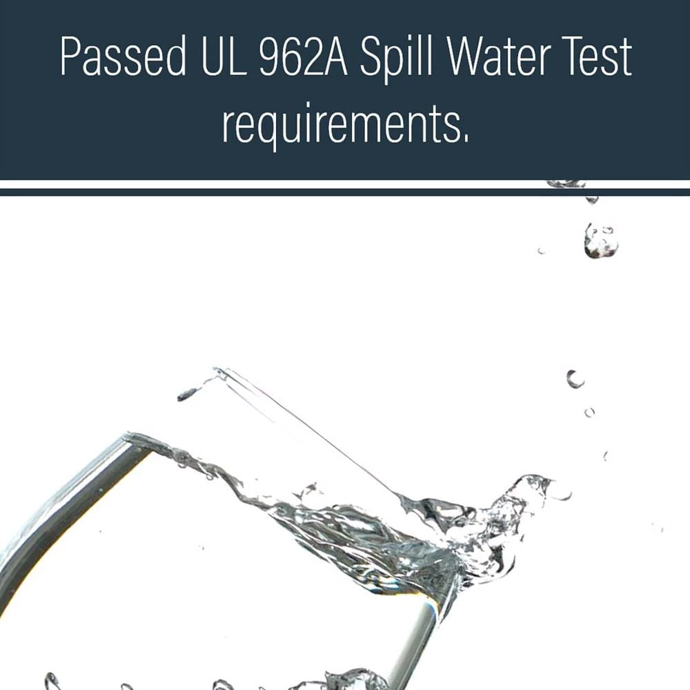 - UL spill water compliant, passed UL 962 Amp spill water test requirements so it can even be used in a horizontal surface such as a tabletop (not intended for countertops)
