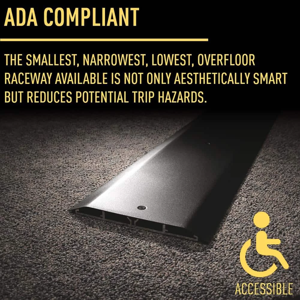 OFR Series Overfloor Raceway System provides four-channels of capacity and access to a wide range of power, communications, and A/V connectivity options. OFR is smallest, lowest, narrowest, ADA compliant profile available in overfloor raceway systems. This system installs over existing floor coverings and is both tamper-resistant and installer-friendly.