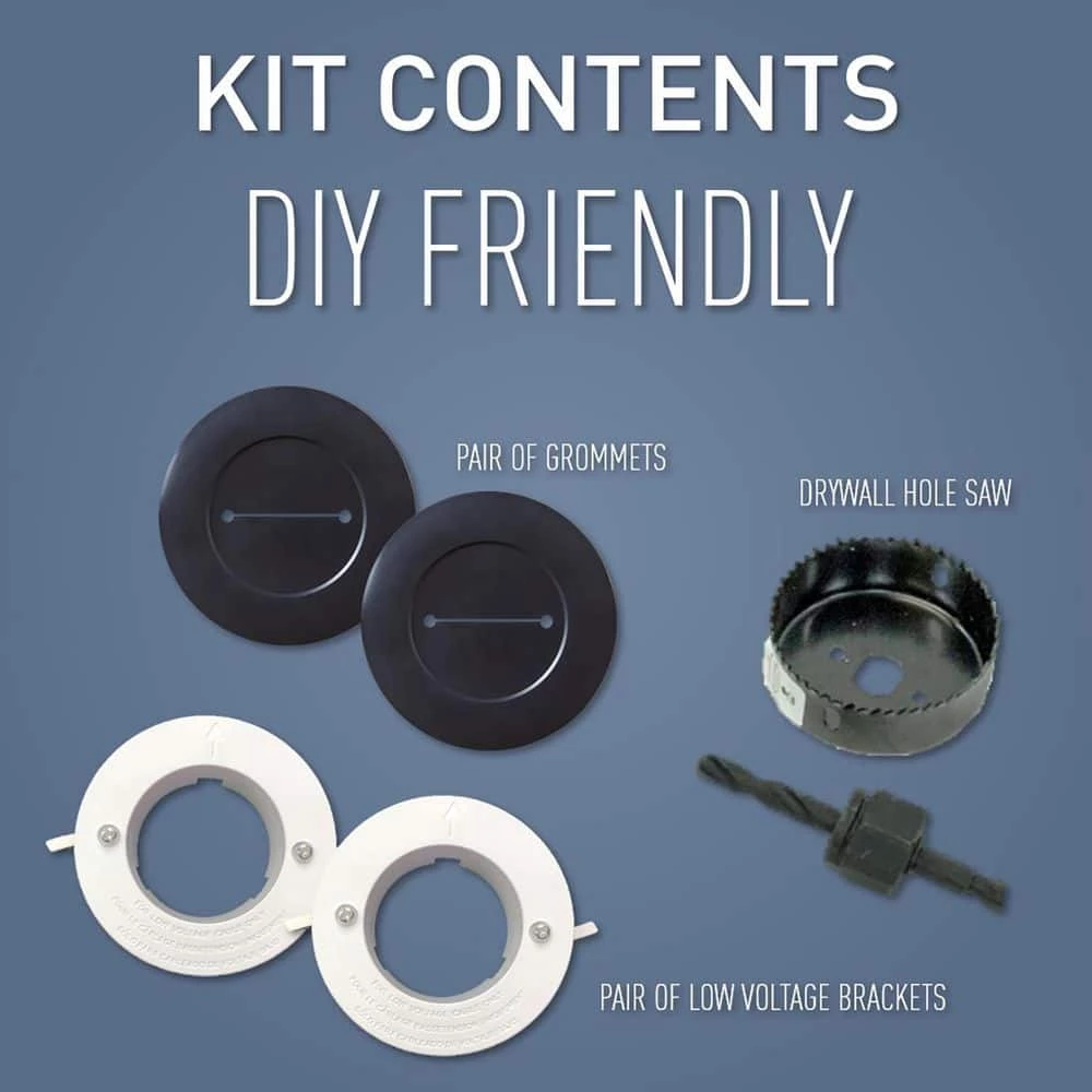Running low voltage cables behind the wall has never been easier with the Wiremold low-voltage in-wall grommet kit by Legrand. It is the easy solution to hiding TV cables in-wall and with no special tools needed for installation. The grommets install in minutes with a clean, professional finish – no visible TV cables. It is the ideal solution for in wall cable management.